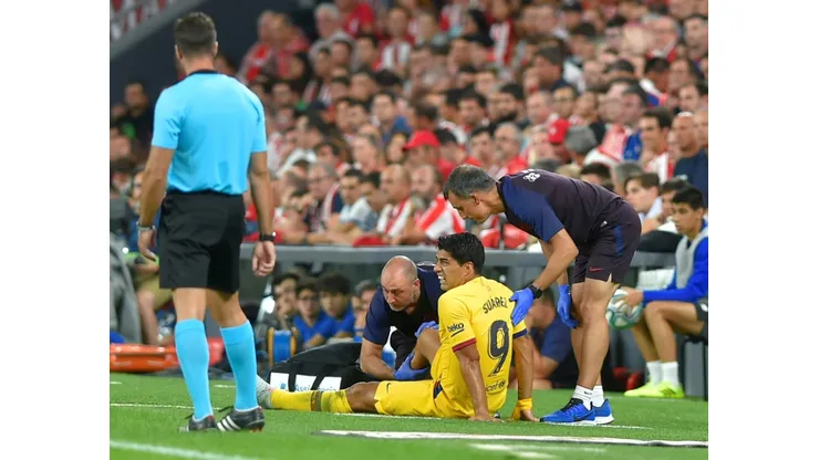 Uruguayan star Luis Suarez limped off after 37 minutes in Bilbao, also with a calf problem, and is expected to be absent for a month.