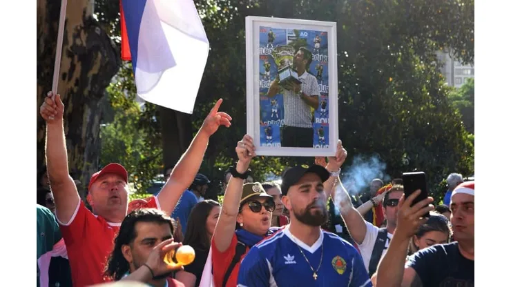 Several hundred fans dressed in the Serbian national colours gathered outside the Melbourne law offices where Djokovic had watched his successful appeal, dancing and chanting his nickname “Nole”.