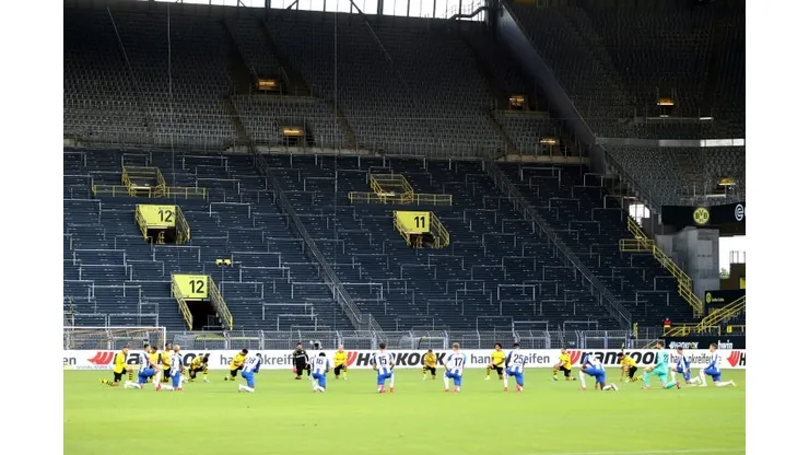 Berlin (AFP) – Borussia Dortmund and Hertha Berlin players staged a show of support for the Black Lives Matter protests by taking the knee ahead of their Bundesliga clash on Saturday.
