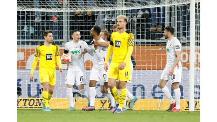Thorgan Hazard’s first-half goal gave Dortmund the lead in Bavaria until Augsburg’s pressure paid off and substitute Bazee headed in off the crossbar.