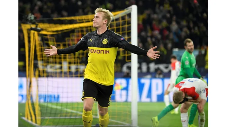 Slavia almost opened the scoring after just seven minutes when Burki made a superb stop from Peter Olayinka’s point-blank range header seconds before Sancho tapped Dortmund ahead following a lightning passing move.