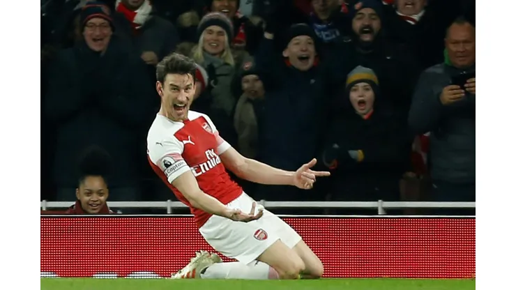 Sead Kolasinac headed down Lucas Torreira’s free-kick into the path of Sokratis Papastathopoulos and his cross picked out the unmarked Koscielny.