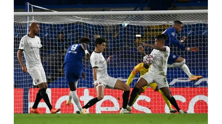 Rennes defender Dalbert, who had already given away the first penalty which had put Chelsea ahead, was sent off for a second booking following a VAR review when a Tammy Abraham shot bounced off his foot onto his arm.