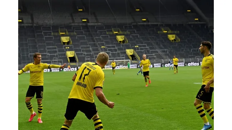Instead of being mobbed by jubilant teammates, Haaland made sure that they all kept their distance as he bobbed a cheeky little dance on the sidelines, in homage to the strict hygiene rules that the league has to follow.