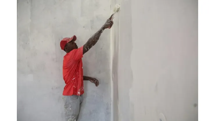 Libreville (AFP) – Dressed in a red Real Madrid jersey smeared with white, Gamamba Souleimane applies a fresh coat of paint to the walls of a small house in Gabon’s capital Libreville.