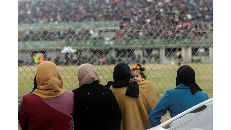 Some of the women instead watched the match between Al-Nuseirat and Al-Jalaa by standing outside the fence, an AFP journalist reported.