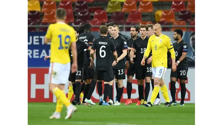 Before their 1-0 win over Romania in Bucharest on Sunday, the German team briefly reversed their shirts prior to kick-off with the numbers facing forwards.