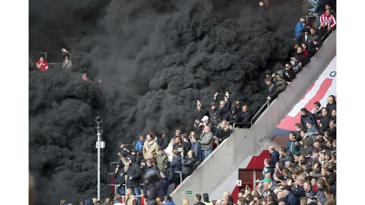 Eindhoven (Netherlands) (AFP) – Thick black fumes from smoke bombs engulfed stands at PSV Eindhoven’s crunch home game against Ajax, interrupting the match and leaving several fans with breathing and eye problems.