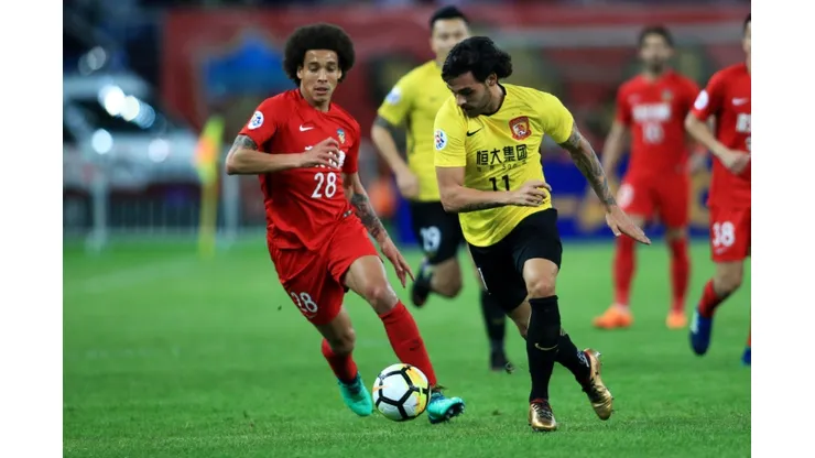 Yu Hanchao was the next to go into the referee’s book after he raked his studs down the calf of Tianjin’s Belgian international Axel Witsel.