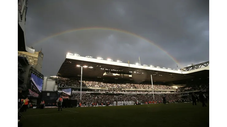 A local choir, the London Community Gospel Choir, sang club anthem “Oh When the Spurs Go Marching In”, with fans joining in as they waved blue and white flags above their heads.