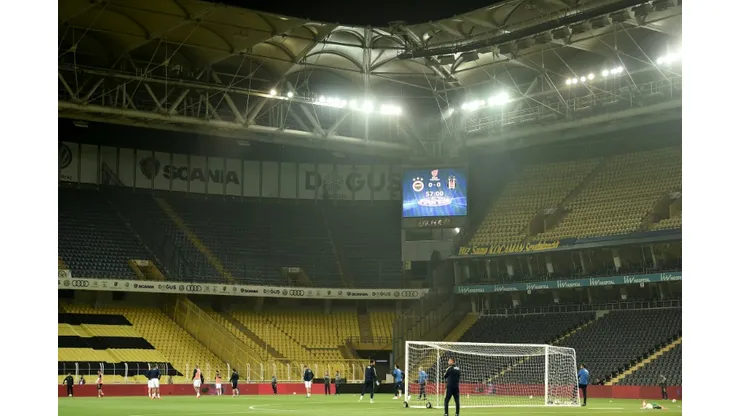 Fenerbahce arrived at their ground and were seen carrying out their routine warm-up moves on the pitch in the empty stadium under coach Aykut Kocaman, an AFP photographer said.