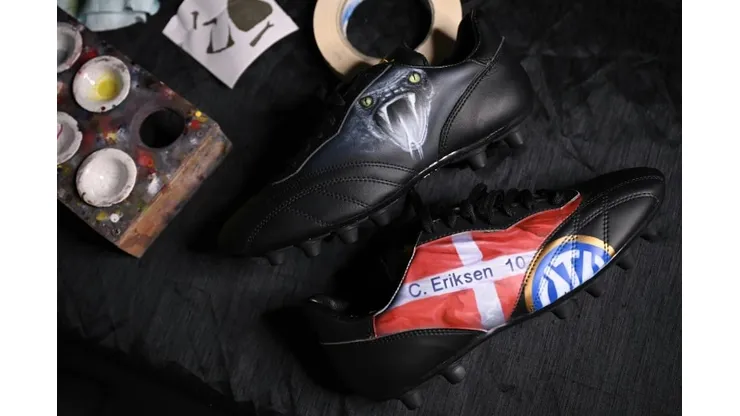 On the right boot, the artist has added the red and white Danish flag, with Eriksen’s name and number 10 from the national squad on the side, butting into Inter Milan’s curved logo.