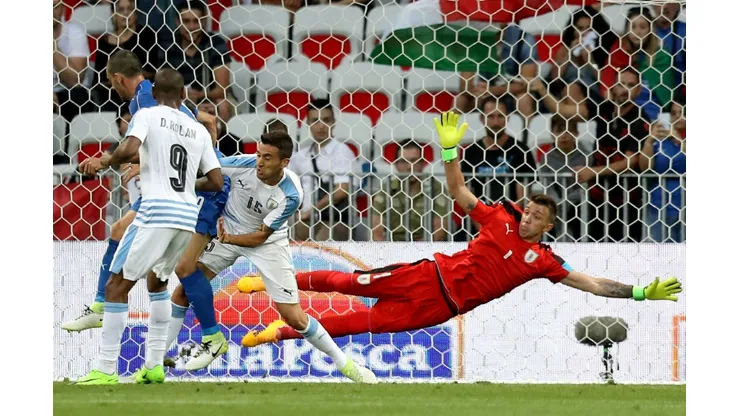 With star strikers Edinson Cavani and Luis Suarez injured, Uruguay suffer an early blow as Gimenez scored a bizarre own goal after just seven minutes.