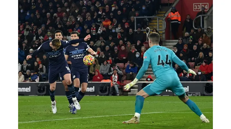 Kevin De Bruyne swung a free-kick to the far post and Laporte was left completely unmarked to score the 11th headed goal against Southampton in the league this season.