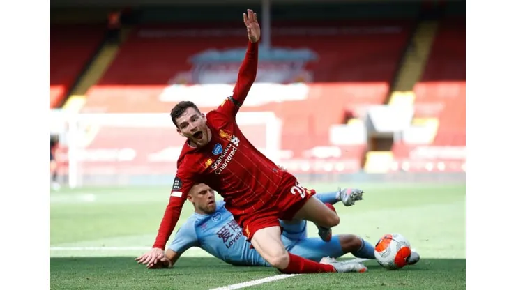 Liverpool took the lead when Andrew Robertson met Fabinho’s lofted pass with a powerful header in the 34th minute.