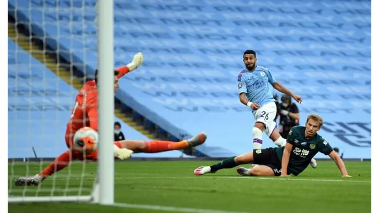 VAR awarded Mahrez the chance to double his tally from the penalty spot after Mee caught Sergio Aguero.