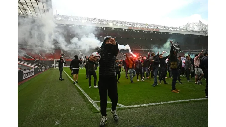 The protestors, angry at the Glazers’ involvement in the failed European Super League plan, damaged the Old Trafford pitch and set off flares, while police were peppered with missiles outside the stadium.