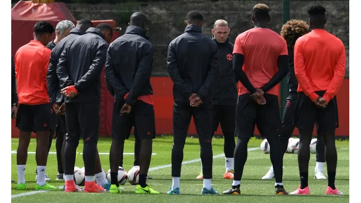 Manager Jose Mourinho led his players in a solemn minute’s silence on United’s Carrington training pitches west of Manchester city centre and said the club had been deeply affected by the tragedy.