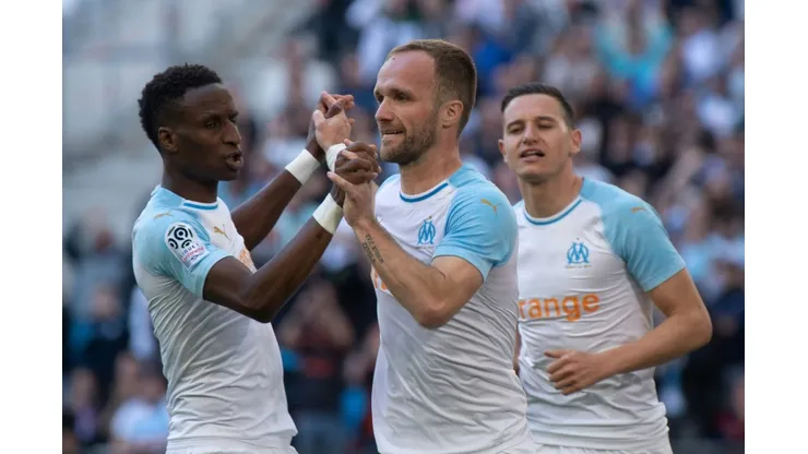 Marseille (AFP) – Marseille’s French forward Valere Germain (C) celebrates after scoring a goal with Marseille’s Guinean midfielder Bouna Sarr (L) and Marseille’s French forward Florian Thauvin during the French L1 football match between Marseille (OM) and Nimes at the velodrome stadium in Marseille on April 13, 2019