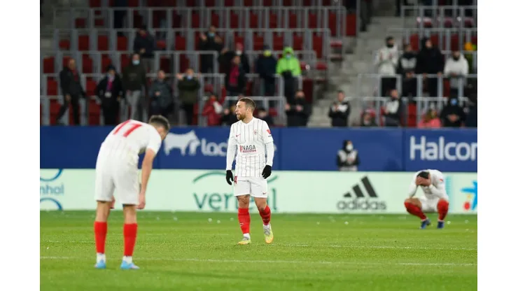 Sevilla were given a golden opportunity in injury-time to snatch victory at El Sadar but Ivan Rakitic missed a penalty, his shot well saved by the diving Sergio Herrera.