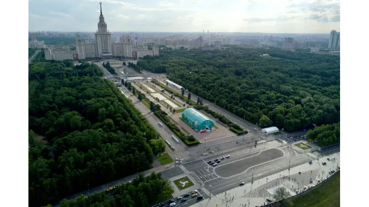 It is being built in the park below the main building of Moscow State University — one of the city’s seven Stalinist skyscrapers — which overlooks the Luzhniki stadium where the opening match will be played on June 14 as well as the final on July 15.