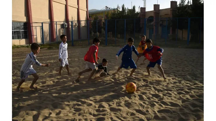 Kabul (AFP) – At a makeshift beach in landlocked Afghanistan, children as young as eight, wearing baggy Real Madrid and Barcelona shirts with “Ronaldo” and “Messi” printed on the back, joyfully kick and chase the ball.