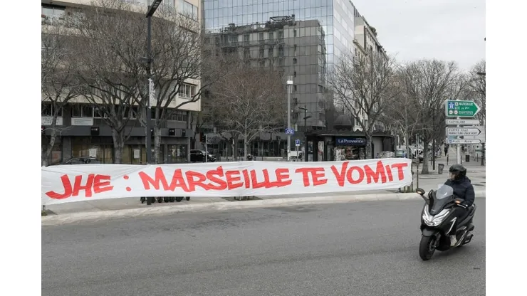 “JHE: No Marseille fans at OM? Get out of here”, said one banner unfurled above a motorway, and “JHE, Marseille vomits you out” said another at the Prado roundabout, a few metres from the Velodrome stadium.