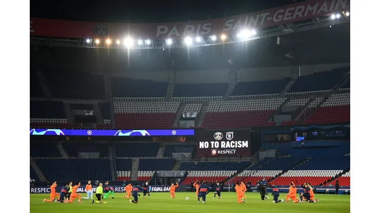 Before that they sported t-shirts with the slogan “No To Racism” while warming up at the Parc des Princes, where large banners in the empty stands carried the same message.