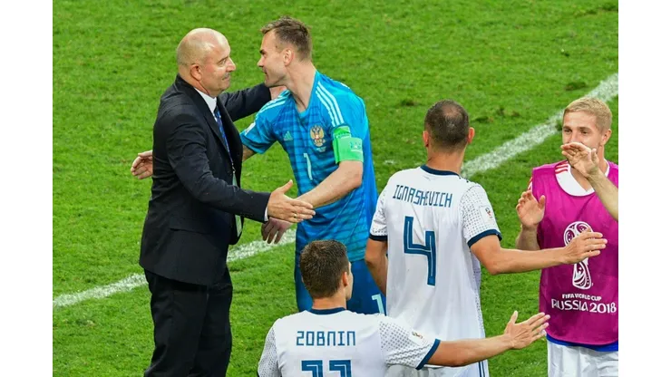 Goalkeeper and captain Igor Akinfeev saved two spot kicks as Russia came out on top 4-3 in the penalty shootout.