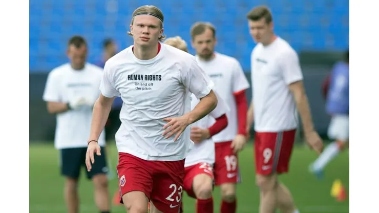 Norway players, including superstar striker Erling Braut Haaland, donned t-shirts with the slogan ‘Human rights, on and off the pitch’ prior to their game in Gibraltar on Wednesday.