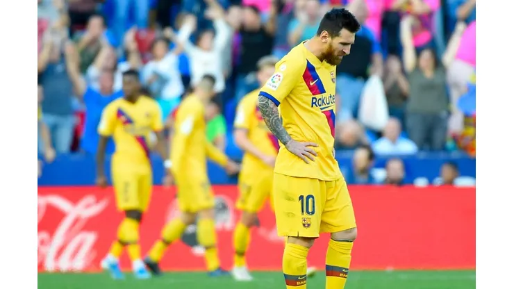 Lionel Messi converted a first-half penalty at the City of Valencia Stadium for his sixth goal in five games only for Levante to stun the defending champions with an incredible treble shortly after the hour.