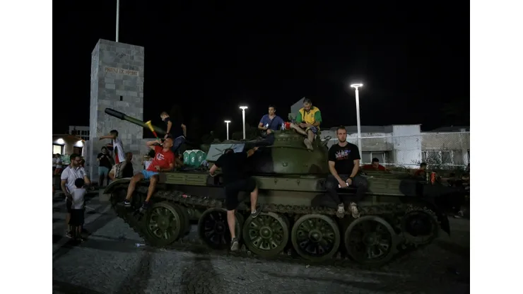 Before their home game against the Swiss champions, Red Star fans stirred controversy by parking a decommissioned Yugoslav army tank outside their Marakana stadium.