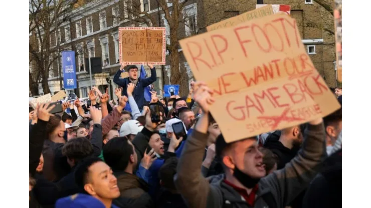 More than 1,000 fans gathered outside Chelsea’s Stamford Bridge stadium to protest against the plan before Tuesday’s Premier League match against Brighton, which ended in a 0-0 draw.