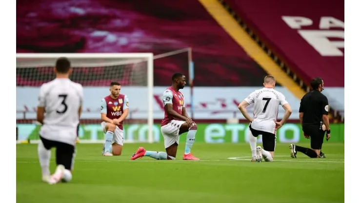 Premier League footballers took a knee on Wednesday evening in solidarity with demonstrations across the world sparked by the killing of an unarmed black man, George Floyd, by US police.
