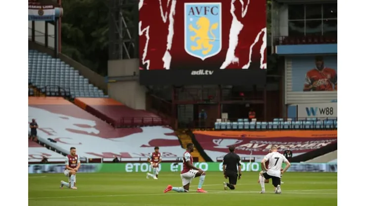 London (AFP) – Aston Villa and Sheffield United players took a knee at kick-off on Wednesday as the Premier League returned after a 100-day stoppage due to coronavirus.