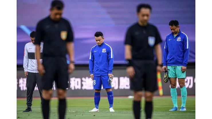 Qingdao’s players and captains from other teams playing in Suzhou, near Shanghai, lined up and applauded as the Zall squad came onto the pitch.