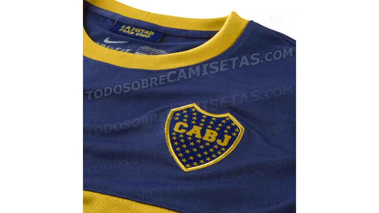 Designed by Nike, the new home shirt from Boca Juniors features a more traditional design than in previous years — with a yellow rounded collar and yellow hems on the bottom of the sleeves.