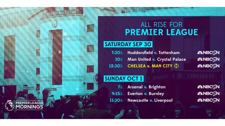 Chelsea vs. Manchester City, 12:30pm, NBCSN, Universo, Sling Blue, DIRECTV NOW and fubo Premier — Arlo White, Lee Dixon and Graeme Le Saux