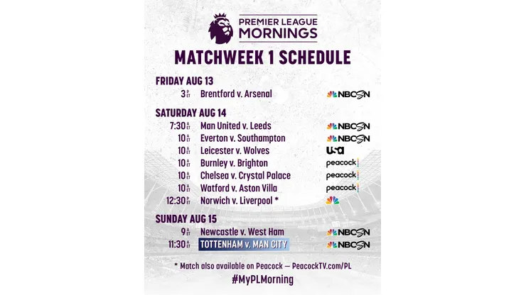 To go along with the start of the season, NBC is bringing back their pre- and post-match coverage programs. Before the first game on Saturday and Sunday, Premier League Mornings gets fans caught up before games kick off. As has been noted, Friday will see a special, two-hour long pre-match show.