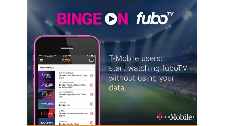 fuboTV, the legal online streaming service, has partnered with T-Mobile to offer soccer fans unlimited streaming of soccer games on mobile devices with T-Mobile’s Binge On program.