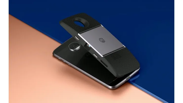 Currently, the Moto Insta Share Projector is available with interchangeable Moto Mods to snap on to the backs of the following smartphones: Moto Z Force, Moto Z and Moto Z Play (the Moto Z Droid is available only on Verizon). In addition to the projector, the phone has other Moto Mods available so you can snap on JBL SoundBoost (for stereo sound speakers), an Offgrid Power Pack (for hours more battery life) or a Style Shell (to completely change the design of the back of your phone).