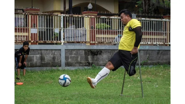 Arifin may only have one leg, but thanks to a pair of crutches and his passion for football, he can move effortlessly across the pitch in agile and precise movements.