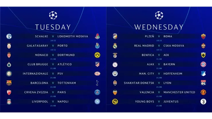 Here’s the Champions League TV schedule (all kickoff times listed in Eastern United States timezone):