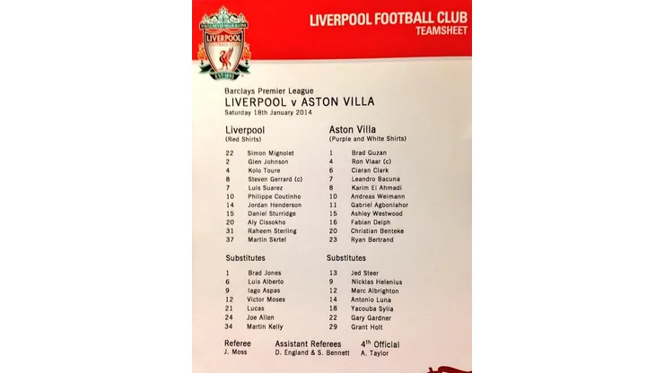 Subs: Jones, Kelly, Lucas, Moses, Allen, Aspas, Alberto