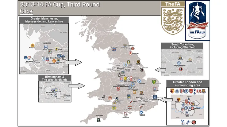 Head on over to Billsportsmaps’ FA Cup Third Round to gain an even better appreciation for the oldest club soccer tournament in the world. When you arrive at his side, click on the map for a larger view.