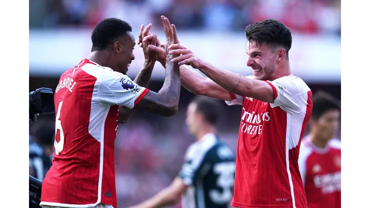 Declan Rice and Gabriel Jesus scored deep into stoppage time as Arsenal beat Manchester 3-1 at the Emirates Stadium on Sunday evening.