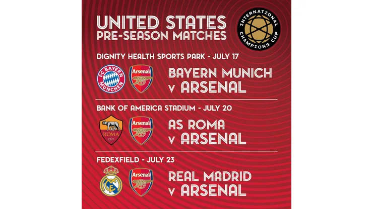Arsenal are heading to the United States this summer for a preseason tour that’ll see them playing from coast to coast.