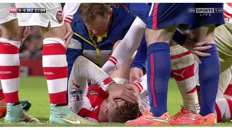 The incident came as Wilshere was driving forwards towards the United box looking to get the Gunners firing again following a first half in which they dominated but could not score, Wilshere guilty of missing a one-on-one against goalkeeper David De Gea.