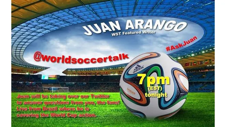 World Soccer Talk writer Juan Arango will be answering questions live from Brazil via Twitter today beginning at 7pm ET/4pm PT.
