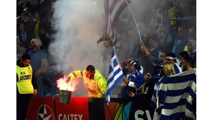 The trouble on Tuesday overshadowed a wonder-goal by Greek midfielder Giannis Maniatis, who scored from 60 metres, lobbing over the head of red-faced Australian goalkeeper Adam Federici, as Greece beat Australia for the time in 38 years.
